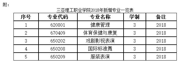 根據(jù)《教育部關(guān)于公布2018年高等職業(yè)教育專業(yè)設(shè)置備案和審批結(jié)果的通知》(教職成函〔2018〕3號)文件,三亞理工職業(yè)學(xué)院申報的健康管理、體育保健與康復(fù)、戲劇影視表演、國際標(biāo)準(zhǔn)舞、服裝表演等5個新專業(yè)成功獲批。新增專業(yè)從2018年開始招生,至此我...