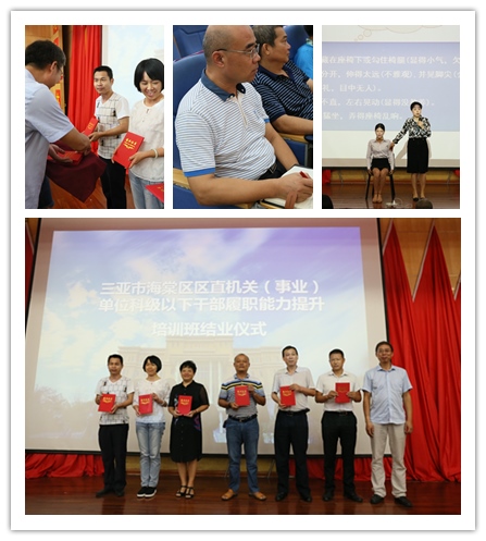 7月27日,由三亞理工職業(yè)學院承接的海棠區(qū)區(qū)直機關(事業(yè))單位科級以下干部履職能力提升培訓班結業(yè)儀式在書善樓報告廳舉行,歷時兩周共計121名機關(事業(yè))單位科級以下干部圓滿完成培訓課程并獲得結業(yè)證書。