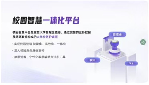 更關(guān)鍵的是,它打破了單一視角的局限:不再只服務(wù)于管理者,而是平等承載管理、教師、學(xué)生三大校內(nèi)視角,更延伸至多校園合作、產(chǎn)業(yè)融合、政府監(jiān)管、家庭與社會(huì)關(guān)切等校外視角,構(gòu)建出多維融合的數(shù)字生命體,讓 “智慧” 覆蓋校園生態(tài)的每一個(gè)角落。
