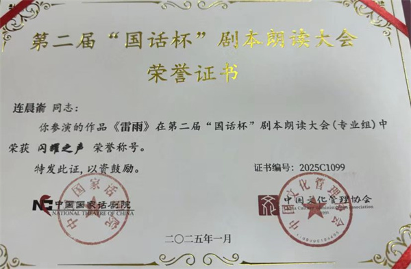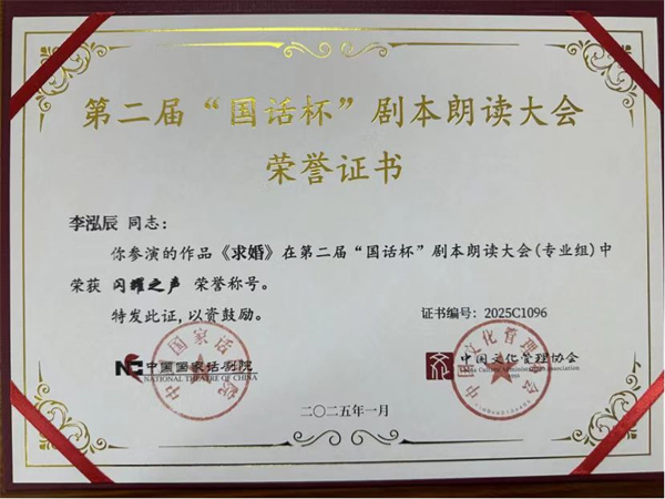近日,從第二屆 “國話杯” 劇本朗讀大會組委會傳來喜訊,三亞理工職業(yè)學院數(shù)字媒體學院的師生們憑借出色表現(xiàn),在大賽中斬獲佳績。表演 231 班陶恒智、李泓辰,播音 241 班莊鈞杰出演的作品《求婚》;播音 241 班孫甜甜、連晨崳出演的作品《雷雨》,雙雙榮獲 “閃耀之聲” 獎,指導教師陳曦榮獲 “優(yōu)秀指導教師” 稱號。三亞理工職業(yè)學院憑借出色的組織工作榮獲 “優(yōu)秀組織單位獎”。