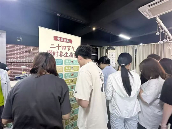 活動(dòng)現(xiàn)場(chǎng)設(shè)置的“二十四節(jié)氣順時(shí)養(yǎng)生指南”主題展板成為一大亮點(diǎn)。展板內(nèi)容豐富多彩,圖文并茂地展示了不同節(jié)氣下的養(yǎng)生要點(diǎn)和飲食建議。師生們駐足瀏覽,被展板上的養(yǎng)生知識(shí)和時(shí)令食譜深深吸引。通過(guò)瀏覽展板,大家不僅了解了每個(gè)節(jié)氣的特點(diǎn)和養(yǎng)生重點(diǎn),還學(xué)會(huì)了如何根據(jù)節(jié)氣調(diào)整飲食,以達(dá)到養(yǎng)生的目的。