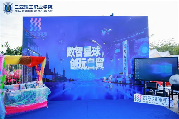 學(xué)校數(shù)字媒體學(xué)院的“椰島數(shù)智”星球是數(shù)字藝術(shù)的狂歡場。“智創(chuàng)未來”通過3D動(dòng)畫工坊、AI智繪速寫構(gòu)建未來自貿(mào)港場景;“星海漫游”以IP形象特展與趣味互動(dòng)游戲展現(xiàn)數(shù)字魅力;“瓊韻印記”融合海南地圖光影簽到墻、非遺火球表演等,讓瓊州風(fēng)情與AI科技精彩共振,盡顯數(shù)媒學(xué)子的數(shù)字賦能實(shí)力。