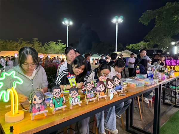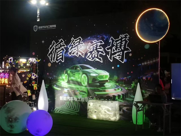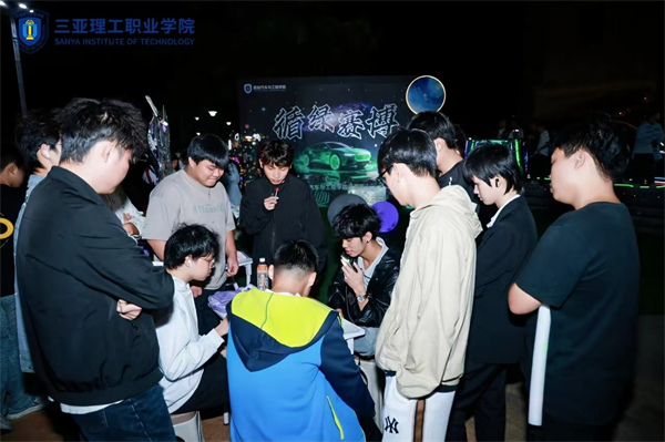 學(xué)校智能汽車與工程學(xué)院的“循綠賽博”星球,主打科技與綠色的碰撞!爸歉能嚦薄碧剿餍录夹g(shù)在汽車領(lǐng)域的酷炫應(yīng)用,“碼創(chuàng)工坊”用AI+編程實(shí)現(xiàn)從代碼到實(shí)物的創(chuàng)造,“車韻文創(chuàng)”將汽車美學(xué)融入潮流設(shè)計(jì),“椰韻非遺”則讓海南本土傳統(tǒng)手藝與綠色主題相融,工科生的創(chuàng)新力與環(huán)保理念在此完美詮釋。