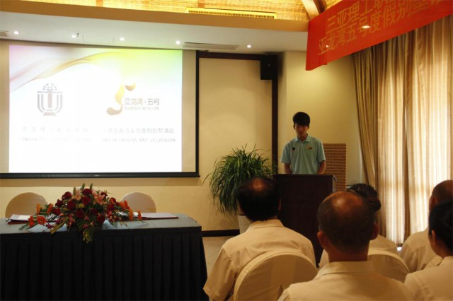 亞龍灣五號(hào)度假別墅酒店副總經(jīng)理盧志義先生致辭,介紹了五號(hào)度假別墅酒店對(duì)人才的迫切需求以及三亞酒店行業(yè)的發(fā)展情況,充分肯定校企合作的重大意義。