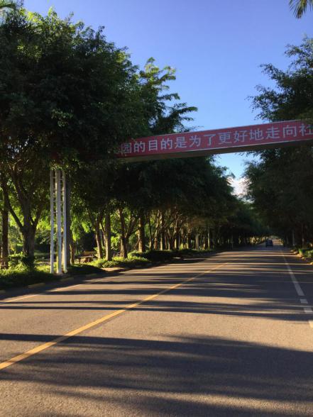 校園里數(shù)量最多的樹木之一就是椰子樹,椰子樹是海島很普及的一種大型植物。椰子樹是常綠喬木,產(chǎn)于熱帶。樹干高約15~30米,單項(xiàng)樹冠,葉柄粗壯,長(zhǎng)超過(guò)1米,常常在校園內(nèi)可見掉落的椰子果實(shí),也給來(lái)自五湖四海的學(xué)生帶來(lái)一絲清涼的樂趣。