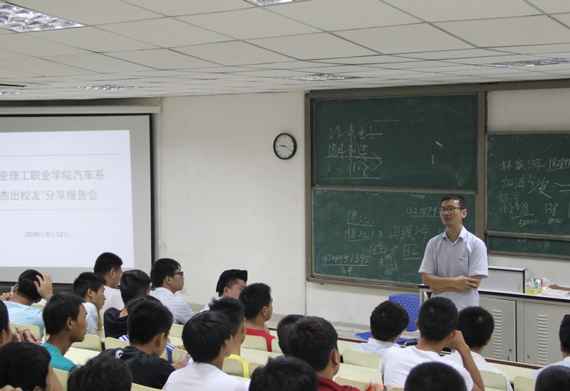 汽車系邀請了我院2013屆林家游、2014屆趙銳、2015屆呂鵬飛、陳奮、馬振沖、2016屆林宇、高文杰、王康、文平八位優(yōu)秀學長到校與汽車系2016級新生進行交流與分享。2016級全體新生參加了會議,汽車系副主任高軍老師出席本次“杰出校友”分享報告會,汽車系辦公室副主任張序國老師主持。
