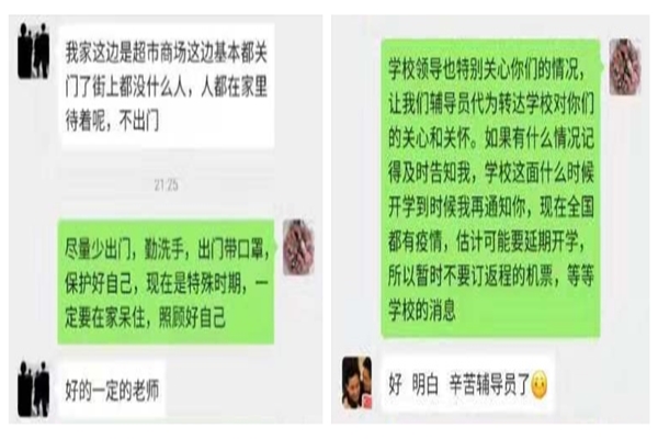 “同學(xué)們一定要做到少出門,不聚會,重防護(hù),戴口罩,勤洗手,常消毒,不離家,不返校,不信謠,不傳謠,信科學(xué),莫恐慌,相信黨和國家,一定可以戰(zhàn)勝疫情!”輔導(dǎo)員老師們?yōu)榱俗寣W(xué)生們廣泛深刻的正確認(rèn)識疫情、提高預(yù)防意識、樹立良好心態(tài),利用當(dāng)下學(xué)生廣泛使用的...