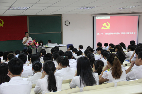 三亞理工第三期業(yè)余黨校培訓(xùn)班開學(xué)2013年5月4日下午,三亞理工職業(yè)學(xué)院第三期業(yè)余黨校培訓(xùn)班開學(xué)典禮在書善樓報(bào)告廳舉行。黨委副書記鄒興海,院長助理姜立功,教務(wù)處處長閆華,教務(wù)處副處長王滿堂,綜合辦公室副主任楊麗娜等出席培訓(xùn)班開學(xué)典禮。全體高唱慷慨...