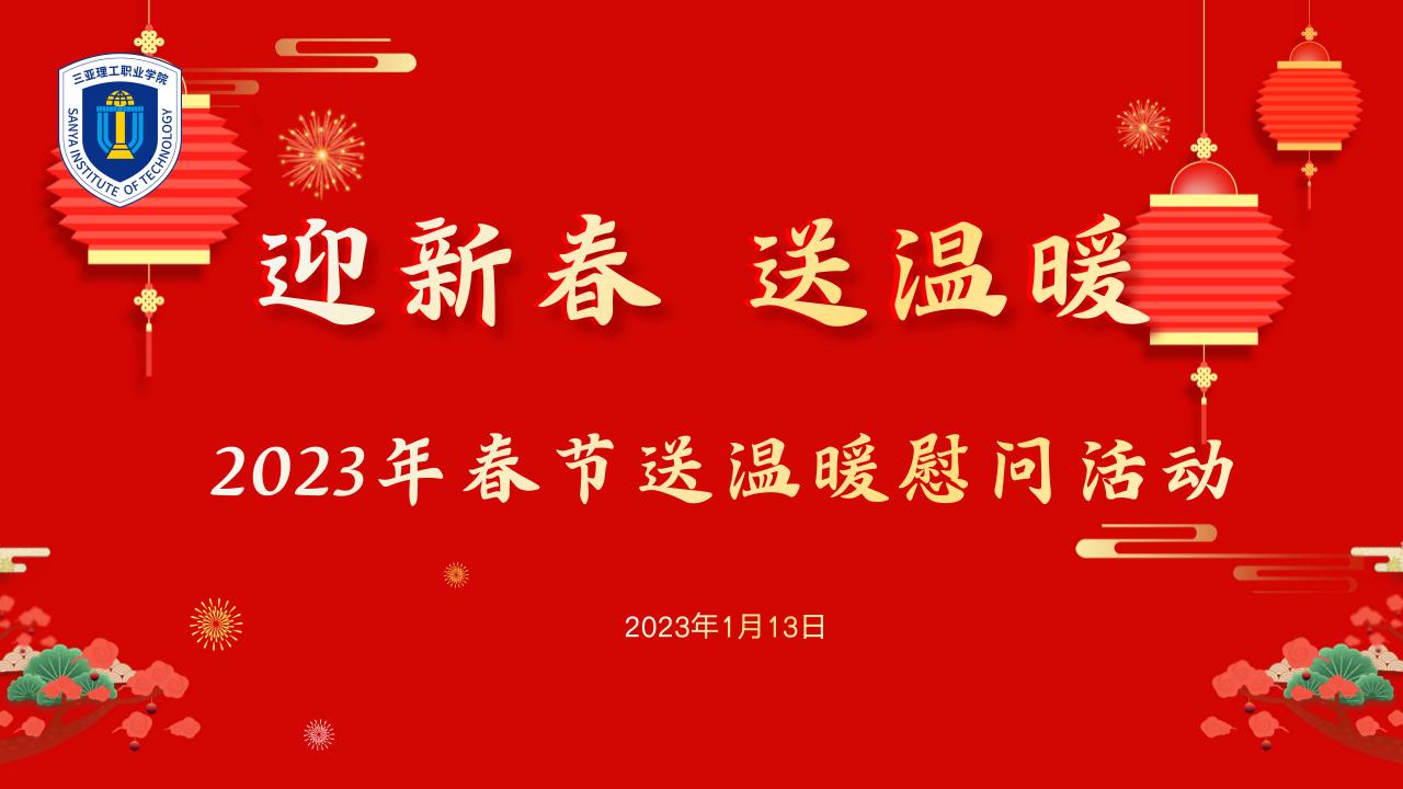2023/1/13慰問傳真情,祝福暖人心。為體現(xiàn)海南省教育廳及學(xué)校對(duì)廣大教職工群眾的關(guān)心和愛護(hù),積極營(yíng)造關(guān)愛教職工的良好社會(huì)氛圍,推動(dòng)節(jié)日期間送溫暖活動(dòng)深入開展,充分發(fā)揮學(xué)校黨委和工會(huì)在幫扶困難教職工群體、激勵(lì)優(yōu)秀教職工群體、促進(jìn)教職工隊(duì)伍和諧穩(wěn)定中的積極作用,進(jìn)...