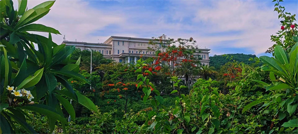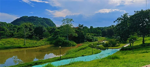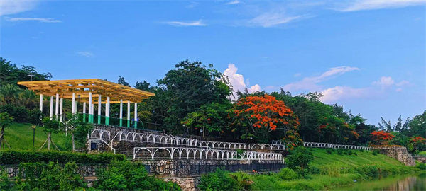 在這方天地,藍天與白云纏綿,湖水如鏡,攬盡青山、建筑與繁花。雞蛋花綻露溫柔,鳳凰木燃燒熾熱,小徑蜿蜒,串聯(lián)起亭臺與蔥郁。每一眼都是自然與人文的和鳴,漫步其間,喧囂遠遁,心浸在這寧靜又鮮活的畫里,不愿醒。