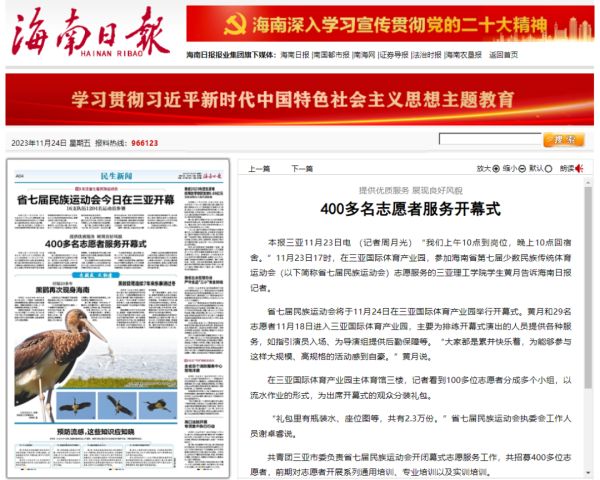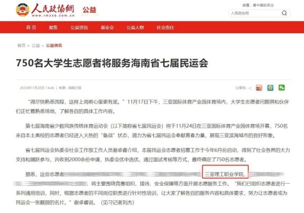 三亞理工職業(yè)學(xué)院歷來重視組織學(xué)生參與賽會(huì)志愿者服務(wù)工作,從北京冬奧會(huì)到第四屆海南島國(guó)際電影節(jié)再到省七屆民族運(yùn)動(dòng)會(huì),三亞理工職業(yè)學(xué)院志愿者工作再次受到媒體關(guān)注和盛贊!