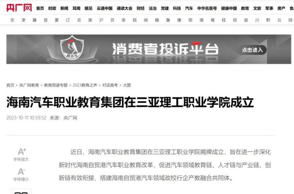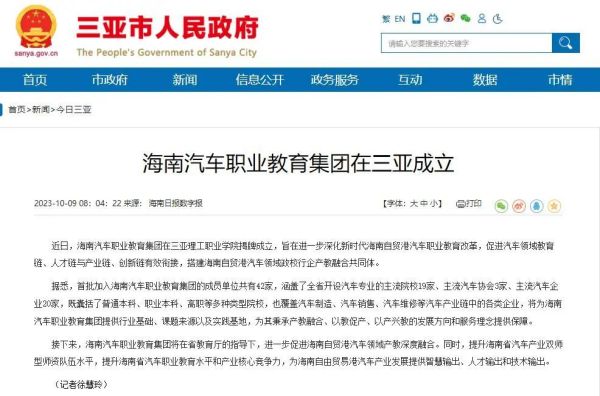 2023年9月27日,海南汽車職業(yè)教育集團(tuán)在三亞理工職業(yè)學(xué)院揭牌成立,旨在進(jìn)一步深化新時(shí)代海南自貿(mào)港汽車職業(yè)教育改革,促進(jìn)汽車領(lǐng)域教育鏈、人才鏈與產(chǎn)業(yè)鏈、創(chuàng)新鏈有效銜接,搭建海南自貿(mào)港汽車領(lǐng)域政校行企產(chǎn)教融合共同體。