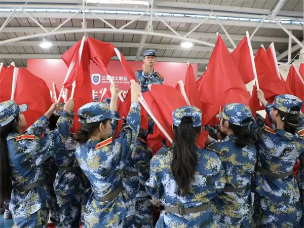 表演中他們服從命令、聽從指揮,每個動作保持高度一致,沉著冷靜,配合默契,展現(xiàn)出理工學(xué)子在面對困難與挑戰(zhàn)時保持勇敢的決心與堅韌不拔的意志。