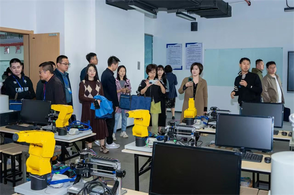 研修期間,學(xué)員們赴常州機電職業(yè)技術(shù)學(xué)院和常州信息職業(yè)技術(shù)學(xué)院參觀。大家走進兩校的人工智能與工業(yè)互聯(lián)網(wǎng)創(chuàng)新中心、智能制造產(chǎn)業(yè)學(xué)院、電磁兼容實驗室、智能裝備大數(shù)據(jù)云中心等實訓(xùn)場所,近距離感受作為全國首批國家產(chǎn)教融合試點城市的常州以及常州職業(yè)院!皩I(yè)建設(shè)同步技術(shù)發(fā)展、政行校企共建創(chuàng)新中心、產(chǎn)教融合校企協(xié)同育人”的職業(yè)教育與產(chǎn)業(yè)融合示范性案例以及先進經(jīng)驗。學(xué)員們帶著對職業(yè)教育的思考,通過基于成果導(dǎo)向產(chǎn)教融合專業(yè)建設(shè)的創(chuàng)新與實踐,加深對職業(yè)教育的理解。