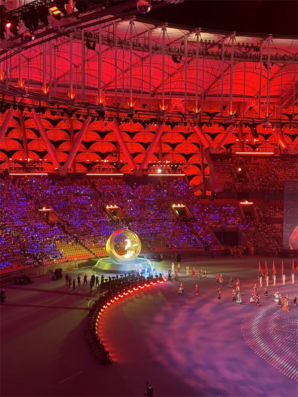 我?guī)状伪滑F場的表演所震撼,現場每一名觀眾都成為開幕式“主角”,全場萬人合唱,一起熱情吶喊,我們共同感受著祖國的強盛與繁榮,讓我熱淚盈眶,璀璨的燈光、震撼的音效、精美的舞臺效果與科技的碰撞的方式,通過演出展示給全國。開幕式多處彰顯了我們的創(chuàng)新能力和高科技應用。這是一次令人難忘的視聽盛宴,它展示了我們祖國的強大和創(chuàng)新力。我為能見證這個歷史時刻感到無比榮幸和自豪。