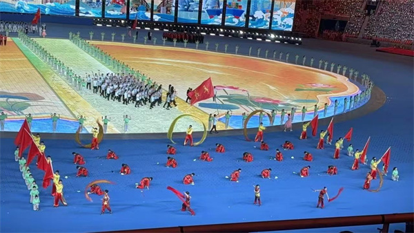 運動會開幕式是一場視覺盛宴,每一處細節(jié)都令人振奮,尤其是全場高唱國歌,以及迎接各代表隊的運動健兒!國家的強大讓我作為一名中國人倍感自豪。作為一名觀眾,也作為一名高校思政工作者,我深感責任重大。以此次家門口的運動會為契機,要帶領大學生青年銳意進取、頑強拼搏,學習運動員永不言敗的體育精神,把愛國之志變成報國之行。