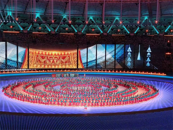開幕式表演之后,以“中華民族大家庭,同心圓夢新征程”為主題的文體展演拉開序幕。展演分為“天下一脈”“中華一體”“團結一心”三個篇章,展現了中華文化的源遠流長、燦爛輝煌,展現了各族兒女牢固樹立休戚與共、榮辱與共、生死與共、命運與共的共同體理念,團結奮斗,揚帆新征程,共圓中國夢。演出在《歌唱祖國》的歌聲中落下帷幕,各族人民共同祝福偉大祖國繁榮昌盛。