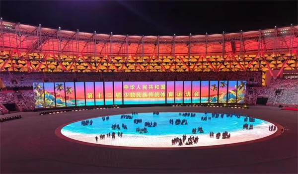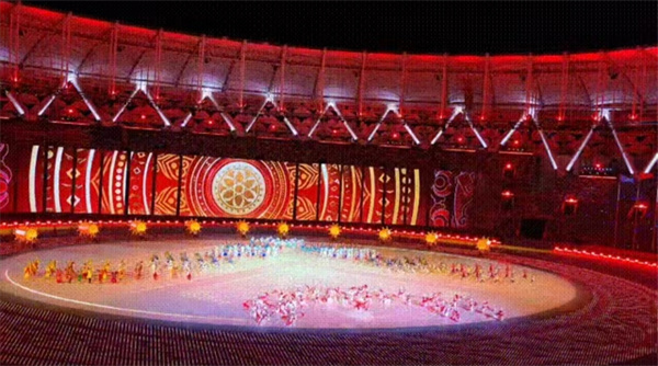 21時中華人民共和國第十二屆少數民族傳統(tǒng)體育運動會正式開幕!剎那間,掌聲、歡呼聲響徹夜空,三亞市體育中心成為歡樂的海洋。