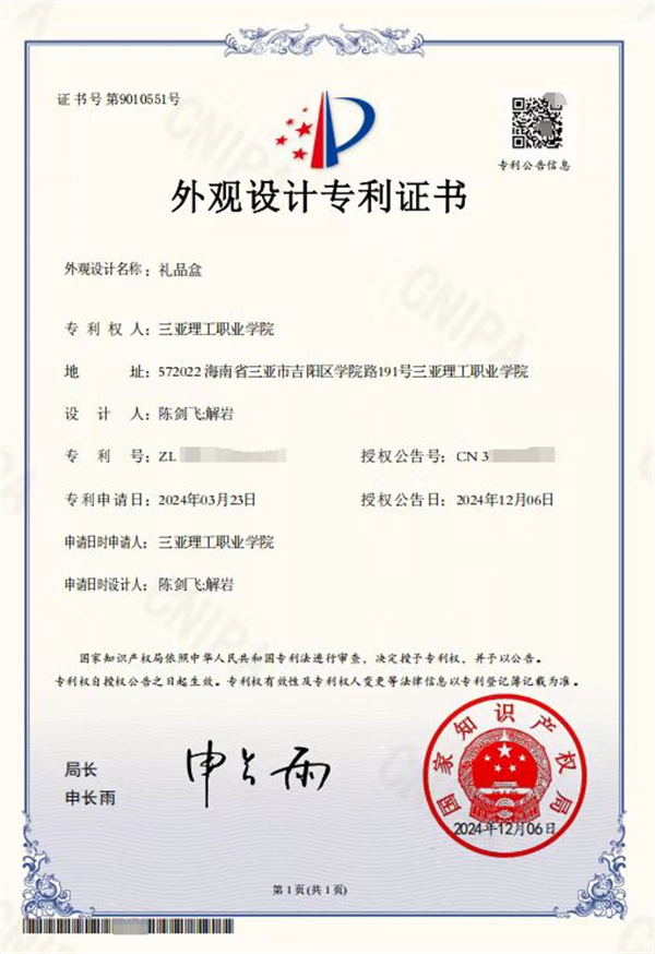 師生團隊以非遺黎錦紋樣為元素,聯合設計生產可市場化的包裝禮盒并投入生產;孵化學生團隊課程中設計的“椰寶”形象玩偶并開發(fā)制作以“椰寶”為形象的動畫短片,實現了文化藝術與數字技術的融合,將課程與市場完美對接,推動了跨界創(chuàng)新人才的培養(yǎng)。