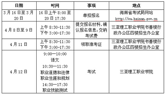 2015年三亞理工職業(yè)學(xué)院?jiǎn)握袌?bào)名考試日程表